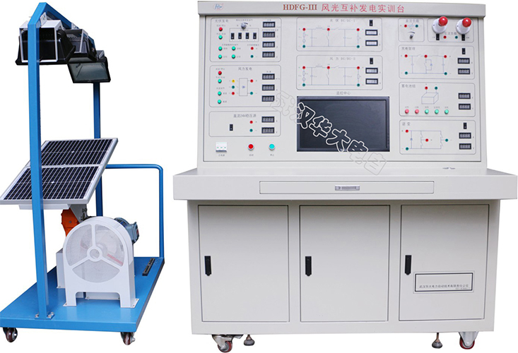 太陽能和風能都是綠色能源之一,風光互補發電實訓平臺是針對綠色能源發電技術的基礎教學實驗平臺,可完成太陽能發電、風力發電以及太陽能、風能互補發電的大部分控制過程實驗和運行過程演示,是學生學習風能和太陽能發電的培訓平臺,也是教師和研究所科研開發的硬件平臺。